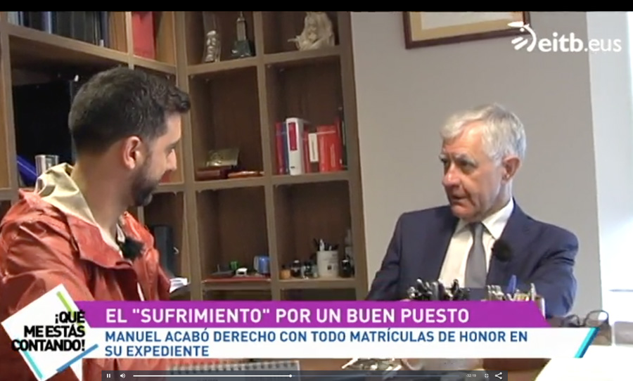 El programa Qué me estás contando, de EiTB, entrevistó el viernes 2 de junio al notario Manuel López Pardiñas para hablar de los estudios y esfuerzos personales que supone una carrera como la de notario. La entrevista se puede ver a partir del minuto 28:40