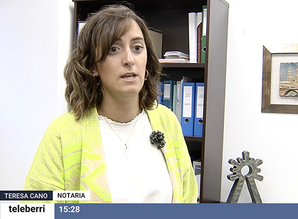 Teresa Cano Marco, notaria de Vitoria-Gasteiz, habló en el Teleberri de ETB2 sobre los  los documentos de voluntades anticipadas, que se pueden realizar ante notario y que casi se han duplicado en Euskadi desde 2022. La noticia se puede ver a partir del minuto 28:22 en el siguiente enlace.