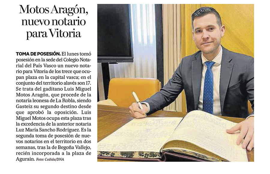 14/02/2022 Luis Miguel Motos Aragón, nuevo notario de Vitoria-Gasteiz Luis Miguel Motos Aragón, nuevo notario de Vitoria-Gasteiz