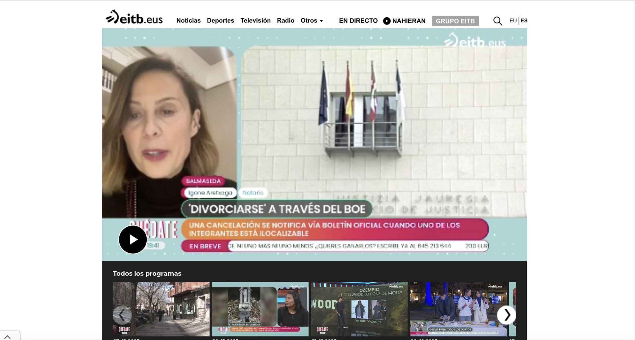 24/01/2025 Programa "Quédate": Entrevista a Igone Aretxaga sobre... Programa "Quédate": Entrevista a Igone Aretxaga sobre parejas de hecho
