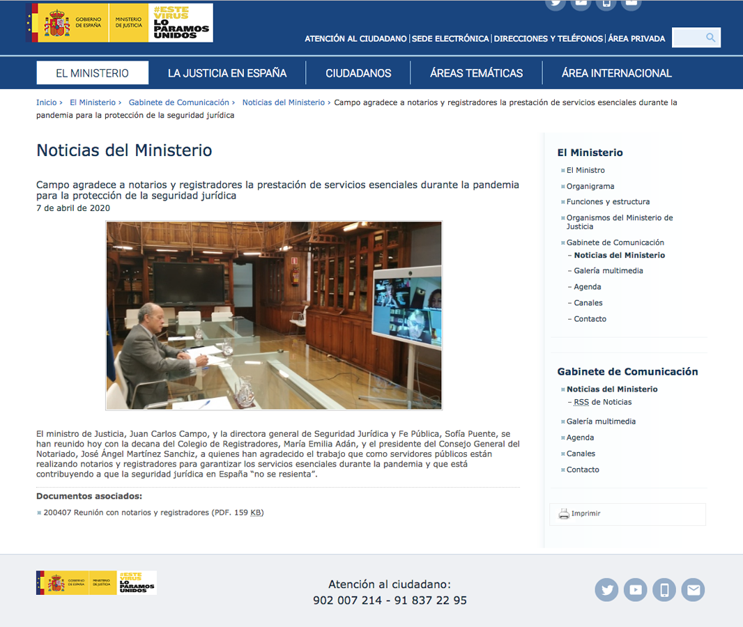 08/04/2020 El ministro de Justicia agradece a los notarios su... El ministro de Justicia agradece a los notarios su implicación como servicio...